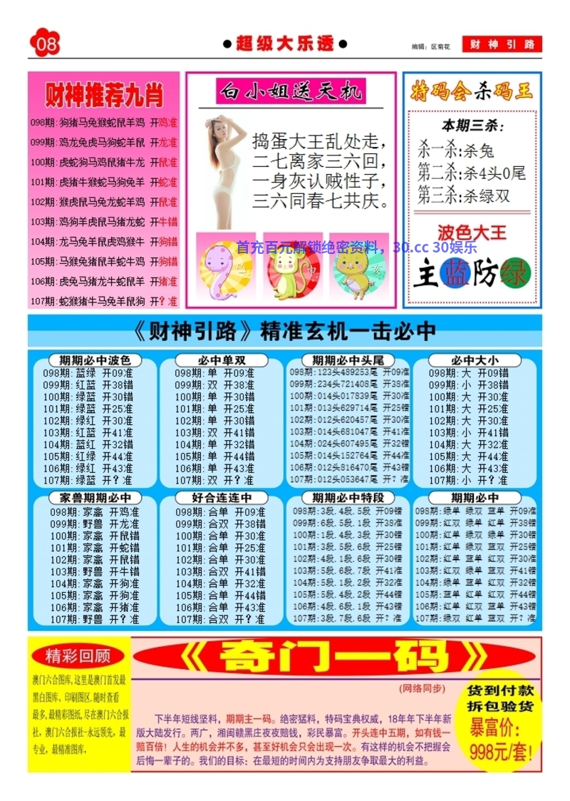 107期:男女两肖『男肖+兔猪』开鸡33错 |